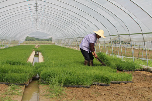 二是优选良种,适期落谷。因地制宜采取集中高台旱育、大棚三膜覆盖、大棚综合增温等技术措施,防御低温冷害。要选择耐寒性强、抗稻瘟病强、熟期适宜的水稻品种,防止越区种植,确保安全成熟。播种前做好种子清选、晒种、发芽试验、种子消毒、浸种和催芽等播前处理工作,确保发芽率达到85%以上,确保苗齐苗壮。机插秧面积较大的合作社或大户,要适时播种、分期播种。播种时间应根据预计插秧日期提前30天播种,采取每天少播、连续播种的方式,保证秧苗适期移栽。