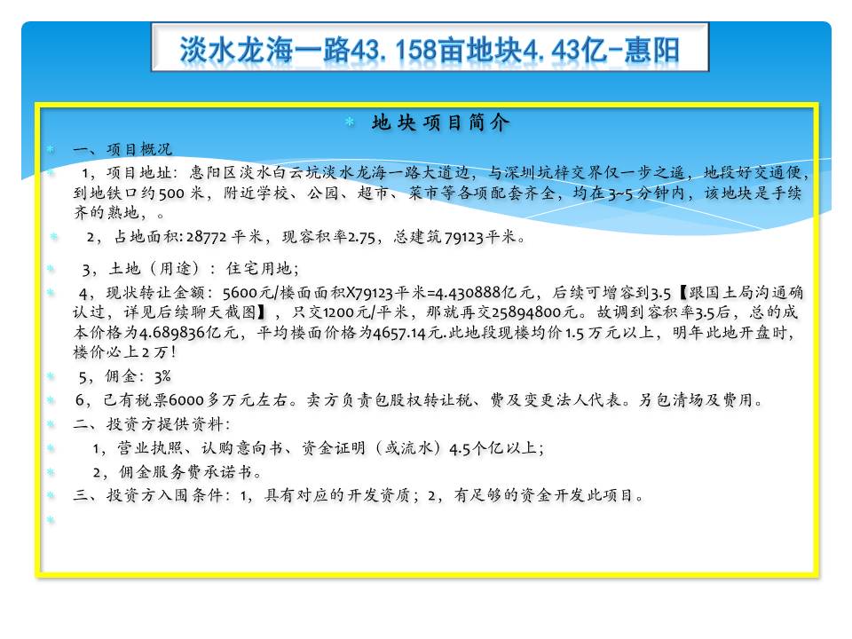 *三、投资方入围条件:1,具有对应的开发资质;2,有足够的资金开发此项目。