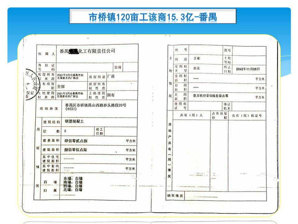 * 7,项目原来是一家化工厂,有厂房和员工宿舍楼,工厂早已停产,员工也已安置妥当,土地干净。在广州番禺市桥,距离地铁口大概10分钟左右路程,周边有高档住宅小区和写字楼,目前该地块周边的挂牌价是13000。商品房是28000~30000左右,地理位置非常好的。原厂房规划有120亩,当时只办了80亩的证,现业主正按120亩面积积极办理完善申请商住的手续资料,因为业主想尽快卖出,价格相对市场价比较优惠,但希望合同会有几个条款可以在此先做说明: