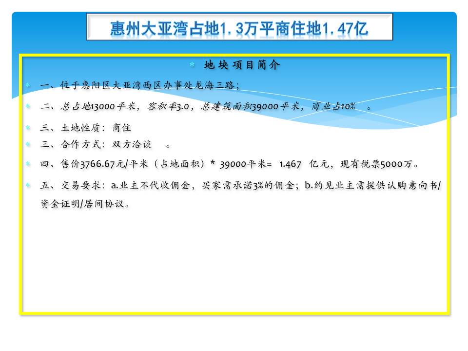 惠州大亚湾占地1.3万平商住地1.47亿